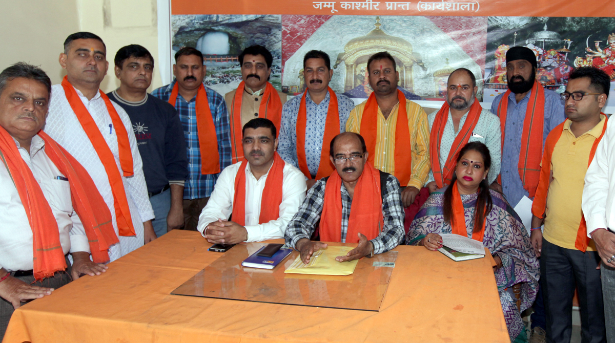 Hindu Jagran Manch leaders during a press conference at Jammu on Sunday. — Excelsior/Rakesh By Daily Excelsior - October 29, 2018 Share FacebookTwitterWhatsAppPinterestLinkedinCopy URLTelegramEmailTumblrReddItPrintKoo Hindu Jagran Manch leaders during a press conference at Jammu on Sunday. — Excelsior/Rakesh Hindu Jagran Manch leaders during a press conference at Jammu on Sunday. — Excelsior/Rakesh Follow our WhatsApp channel