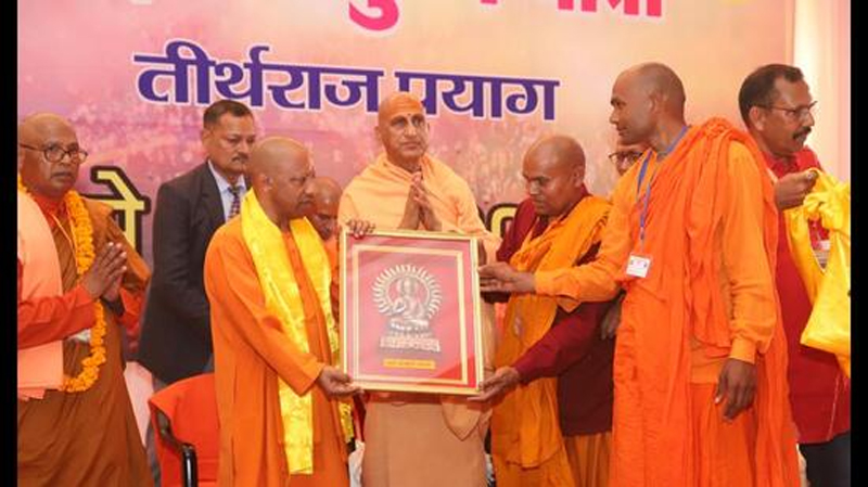 Inaugurating the Buddhist Maha Kumbh Yatra during his visit to Prayagraj, the chief minister praised the coming together of different worship traditions on a single platform, calling it a commendable initiative. After the event, he showered flowers on Buddhist saints and scholars.