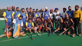 Hockey players posing for photograph with dignitaries after their match at KK Hakku Stadium, Jammu on Monday. By Daily Excelsior - December 5, 2017 Share FacebookTwitterWhatsAppPinterestLinkedinCopy URLTelegramEmailTumblrReddItPrintKoo Hockey players posing for photograph with dignitaries after their match at KK Hakku Stadium, Jammu on Monday. Hockey players posing for photograph with dignitaries after their match at KK Hakku Stadium, Jammu on Monday. Follow our WhatsApp channel