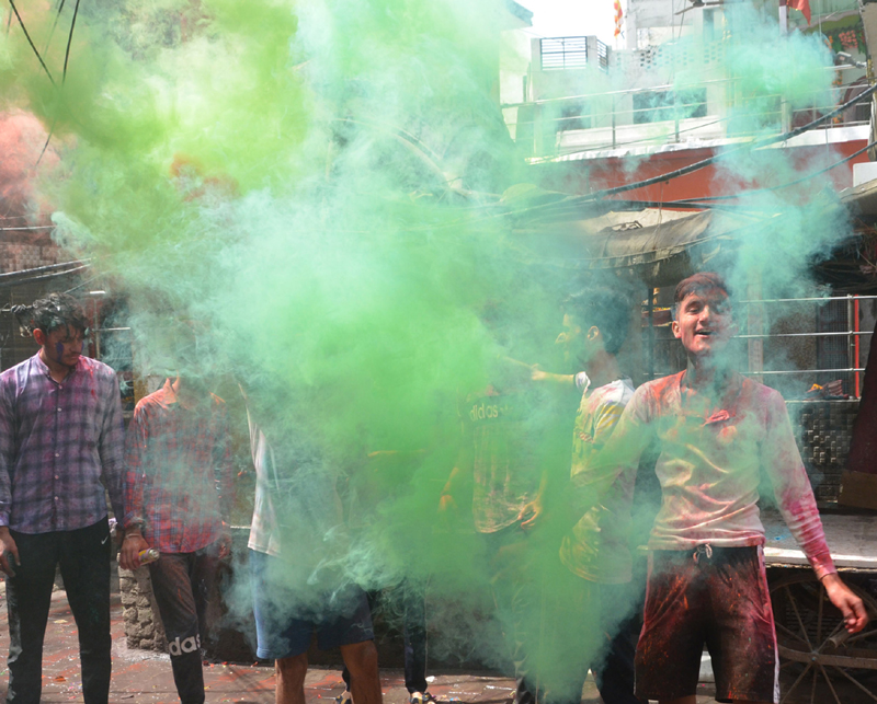 There was no fanfare during the festival this time again and the people preferred to remain indoors as no body liked to take the risk. However, some youth were seen playing Holi with their friends and relatives in various areas but that too in a restricted manner in view of the threat of the pandemic.