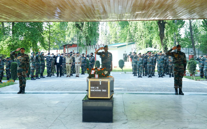 Homage being paid to martyr Nishan Singh at Badami Bagh Cantt, in Srinagar on Sunday. By Daily Excelsior - April 17, 2022 Share FacebookTwitterWhatsAppPinterestLinkedinCopy URLTelegramEmailTumblrReddItPrintKoo Homage being paid to martyr Nishan Singh at Badami Bagh Cantt, in Srinagar on Sunday. Homage being paid to martyr Nishan Singh at Badami Bagh Cantt, in Srinagar on Sunday. Follow our WhatsApp channel
