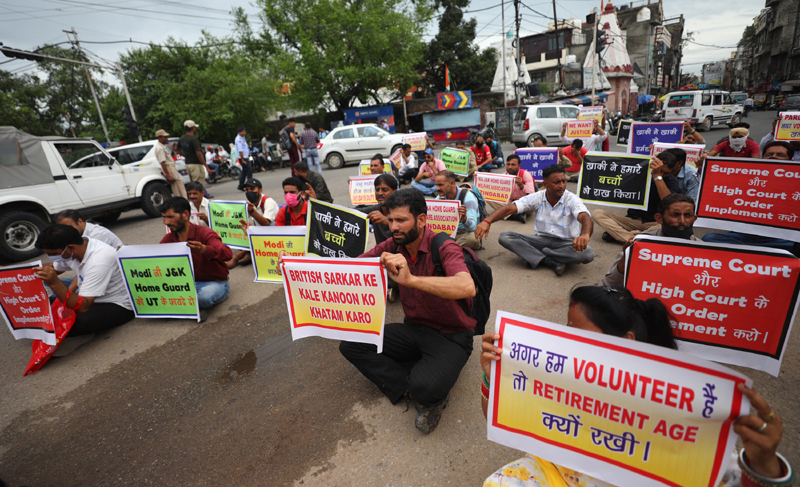 JAMMU, Sept 18: To raise the burning demands of their employees, a protest was organised by the members of Home Guards Employees Association here today.