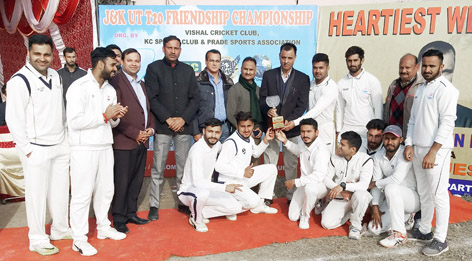 Winners of J&K UT Friendship Championship posing along with dignitaries at Parade Ground in Jammu on Wednesday.