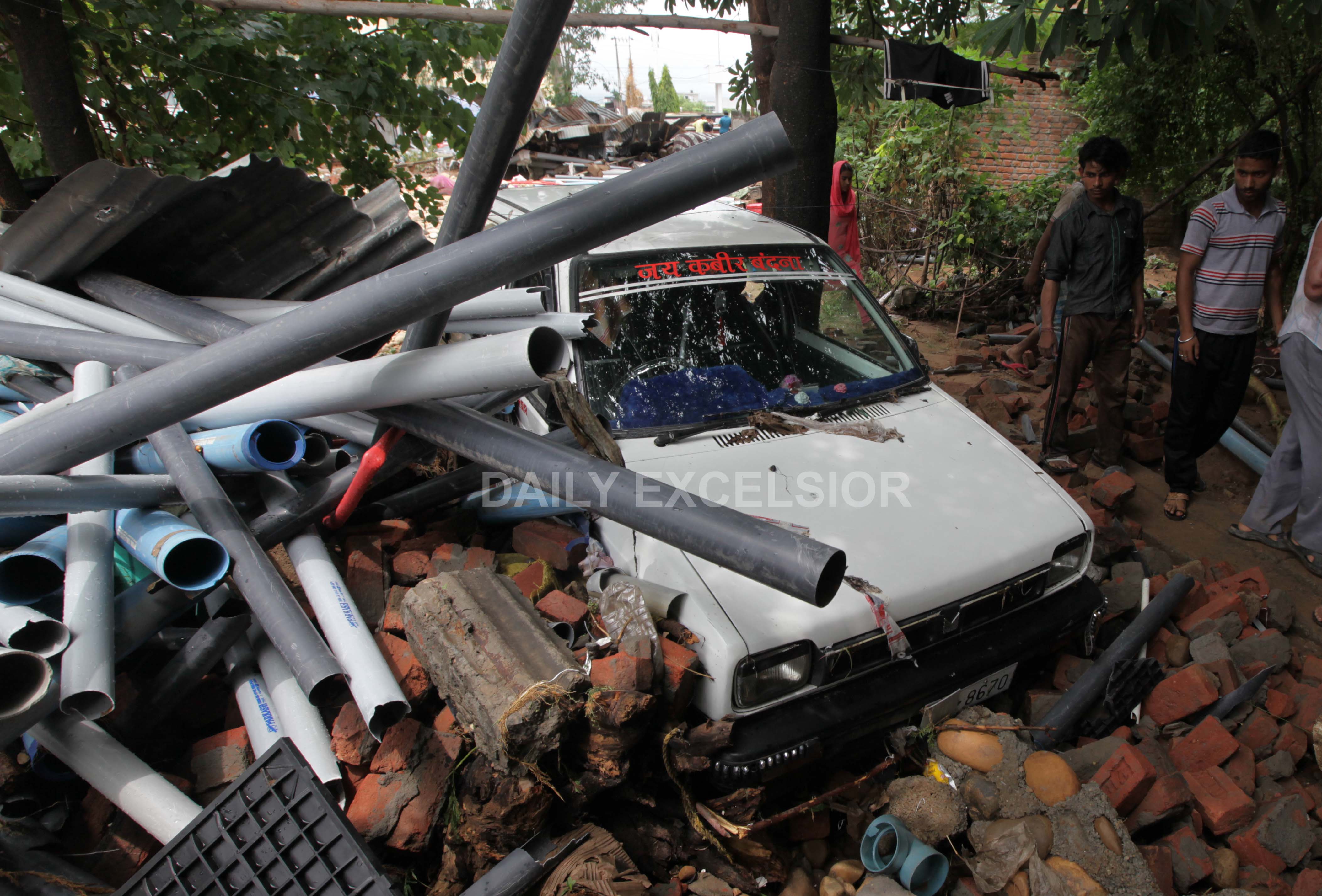 House damaged in Narwal area if Jammu city after heavy rains during last night…Excelsior/Rakesh By Daily Excelsior - July 9, 2015 Share FacebookTwitterWhatsAppPinterestLinkedinCopy URLTelegramEmailTumblrReddItPrintKoo Follow our WhatsApp channel