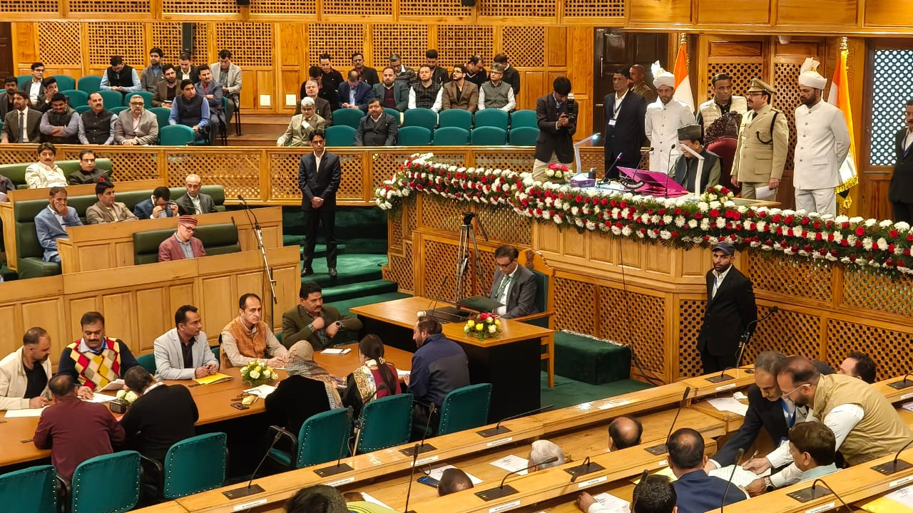 Before the start of the session, MLAs from the ruling National Conference (NC) and Congress staged a silent protest on the Assembly premises, demanding the release of AAP MLA Mehraj Malik, who was arrested in September under the Public Safety Act (PSA) for allegedly disturbing public order in Doda district.