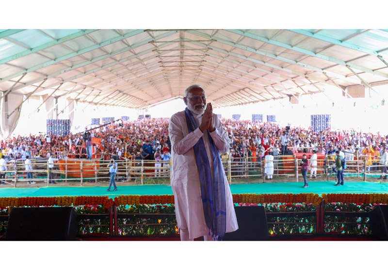 Prime Minister Narendra Modi at a public meeting for Lok Sabha elections in Dumka district, Jharkhand on Tuesday. (UNI)