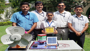 JAMMU, Aug 22: Humanity Public School, Bassi Kalan, Bari Brahmana felicitated its student Aditya Yadav of Class 8th and In-charge teacher Sandeep Zutshi for getting excellent project award for Hybrid Solar Refrigerator and Wind Mill in the 4th District Level Inspire Award Science Exhibition, organized by DIET Samba.