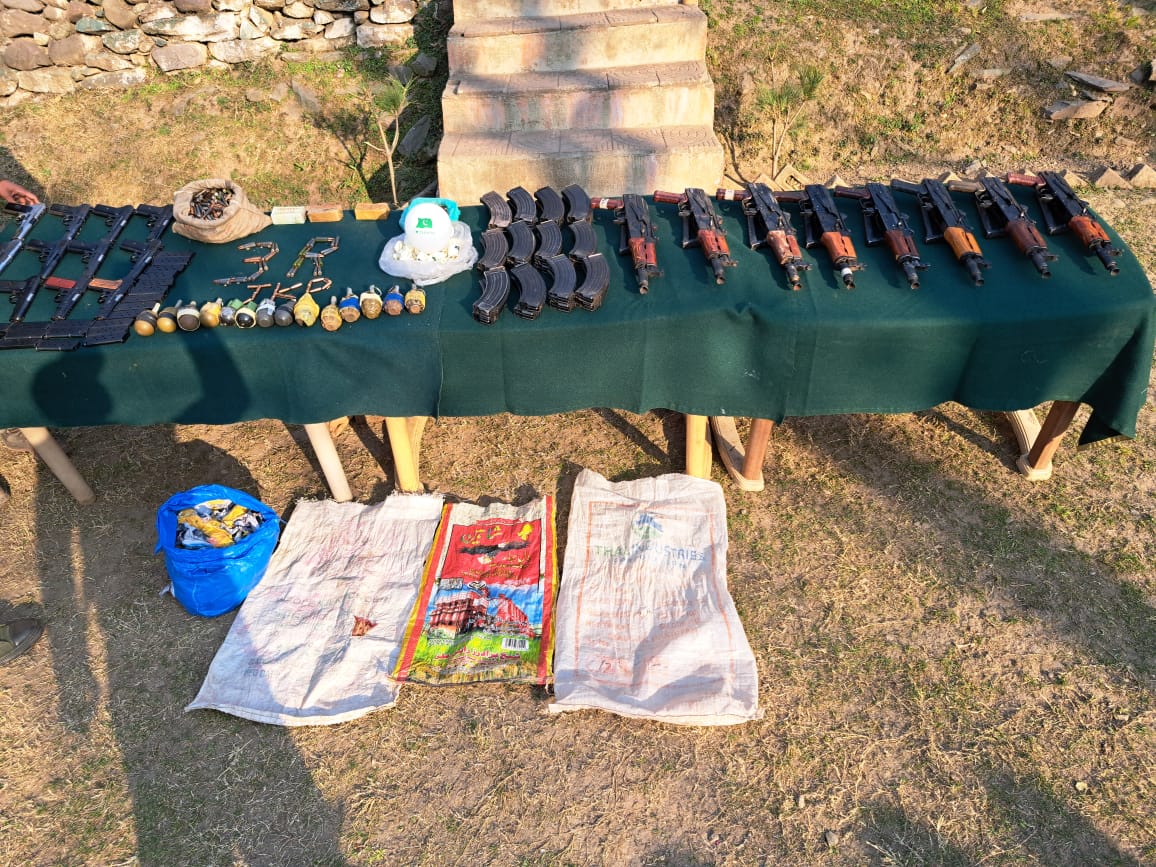“8 AK74u, 24 AK 74 Magazines, 12 Chinese Pistols, 24 pistol magazines, 9 Chinese grenades, 5 Pak Grenades, 5 wheat bags, 81 Pak Balloons, 560 rounds of AK Rifle, and 244 rounds of the pistol were recovered from the area”, it said.