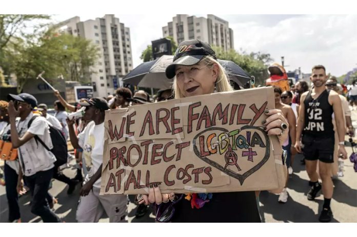 The march in the Sandton district of Johannesburg, was a colorful spectacle but also an opportunity for the LGBTQ+ community to highlight critical issues such as the discrimination most members of the community still face despite South Africa’s progressive stance on equality issues.
