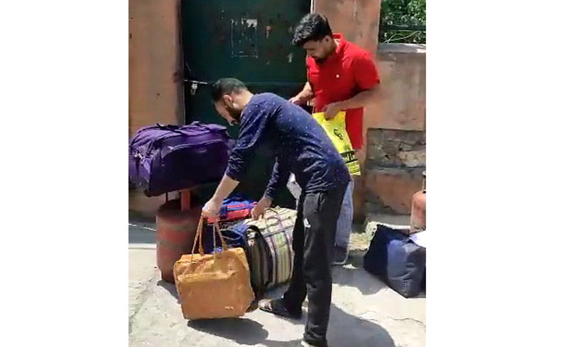 Today an effort was made by scores of PM package employees living in Mattan in district Anantnag. Senior police officials rushed to the area and prevented them from coming out of the Colony. Carrying their belongings with them, they were heading to Jammu.