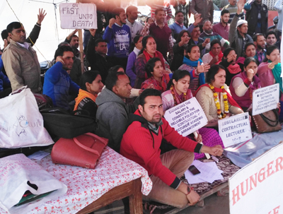 JAMMU, Mar 15: The ongoing hunger strike by Contractual Lecturers (10+2), who are demanding regularization, entered into 30th day today.