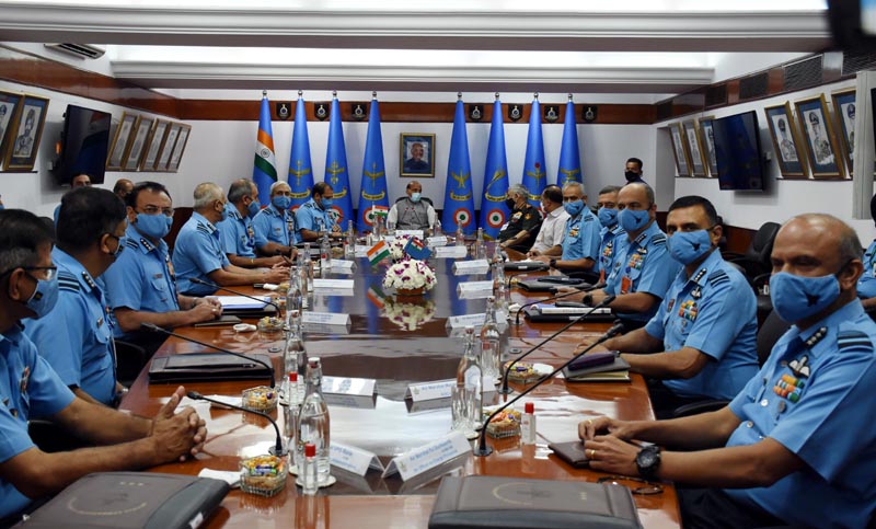 The bi-annual commanders’ conference was inaugurated by Defence Minister Rajnath Singh at the Air Headquarters in Delhi.