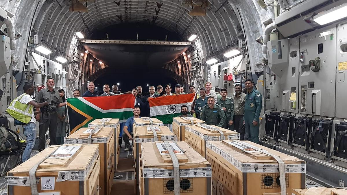 These animals had embarked on a journey to their new home thousands of miles away aboard an IAF transport aircraft from the O R Tambo International Airport, Gauteng in South Africa shortly before midnight, a project participant and expert said.