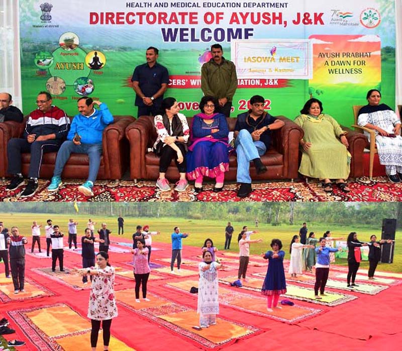JAMMU, Nov 2: IAS Officers’ Wives Association (IASOWA) J&K, in collaboration with Directorate of Ayush organised one day Ayush Prabhat (‘Ayush Yoga Wellness Camp’) at Sidhra Golf Course Jammu.