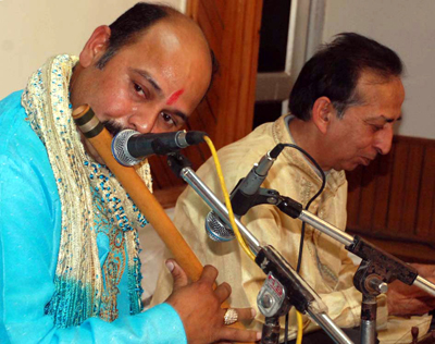 Another renowned musician Ravi Sharma accompanied him on Santoor. The wonderful fusion of flute and Santoor, supported by admirable rhythm provided by Purshotam Kumar on Tabla and Darbari Lal on Dholak left the audience ecstatic.
