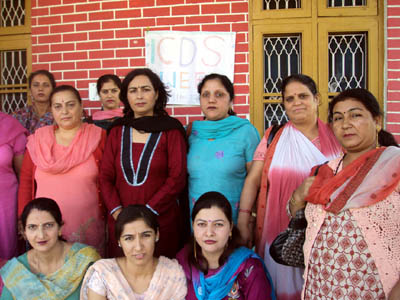 Amar Jyoti Raina, CDPO Migrant, Jammu, posing for group photograph along with the workers of ICDS at Jammu on Tuesday.