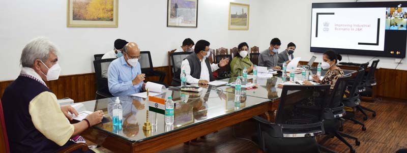 Lieutenant Governor Manoj Sinha reviewing functioning of Industries & Commerce Department in Srinagar on Thursday.