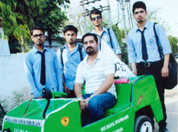 JAMMU, May 12: Under an engineering college project, the students of IECS, Purkhoo Camp, Jammu have designed a four wheeler by assembling the components of two- wheeler which runs on both petrol and LPG.