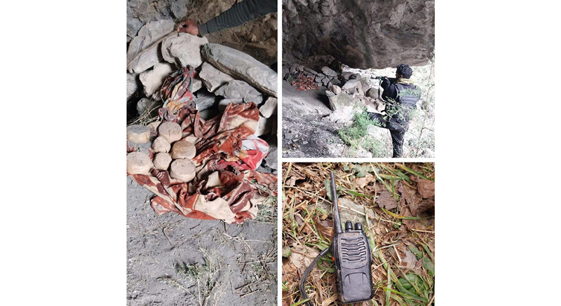 Recoveries made from the hideout include seven rusted IEDs, one wireless set, blankets and some other material which was dumped by the militants’ sometime back for causing terror strikes but they failed to use it due to pressure being maintained on them by security forces.