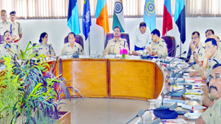 IG CRPF AV Chauhan chairing a meeting at Jammu on Tuesday.