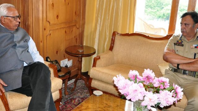 An official spokesperson here said Mr Khan met the Governor for the first time after taking over the charge as IGP, Kashmir, at the Raj Bhavan here.