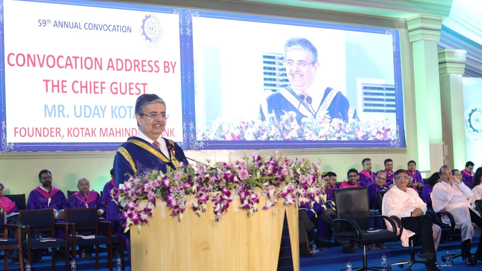 Kotak Mahindra Bank founder Uday Kotak, in his speech as the chief guest, called upon the graduating students to champion professional “entrepreneurship” and spearhead India’s economic ascent.