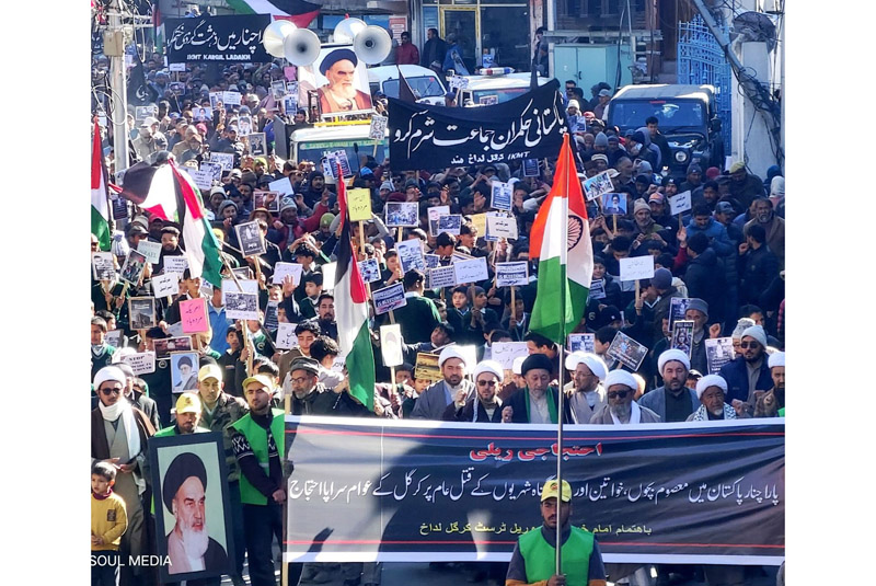 KARGIL, Nov 25: Condemning the recent terrorist attack targeting Shia travellers in the Khurram Agency, Parachinar, Pakistan, a massive protest rally was today organized by the Imam Khomeini Memorial Trust (IKMT).