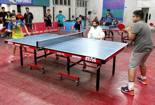 Peddlers in action during a match of ongoing 32nd Jammu District Table Tennis Championship 2016 at MA Stadium in Jammu. Excelsior/Rakesh
