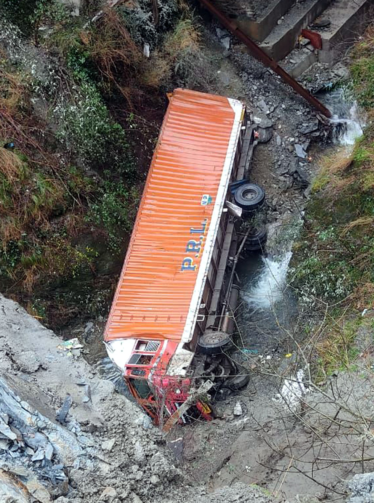 Ill-fated truck lying in gorge. —Excelsior/Pervaiz
