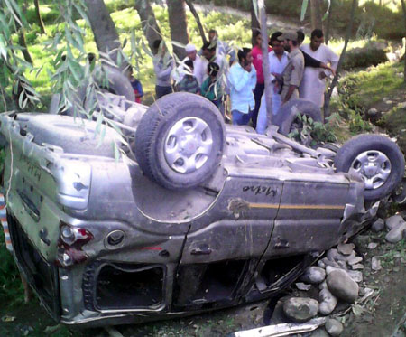 The ill-fated vehicle carrying Amarnath yatris after accident at Darend Nagbal in district Ganderbal on Friday. By Daily Excelsior - July 12, 2014 Share FacebookTwitterWhatsAppPinterestLinkedinCopy URLTelegramEmailTumblrReddItPrintKoo The ill-fated vehicle carrying Amarnath yatris after accident at Darend Nagbal in district Ganderbal on Friday. The ill-fated vehicle carrying Amarnath yatris after accident at Darend Nagbal in district Ganderbal on Friday. Follow our WhatsApp channel