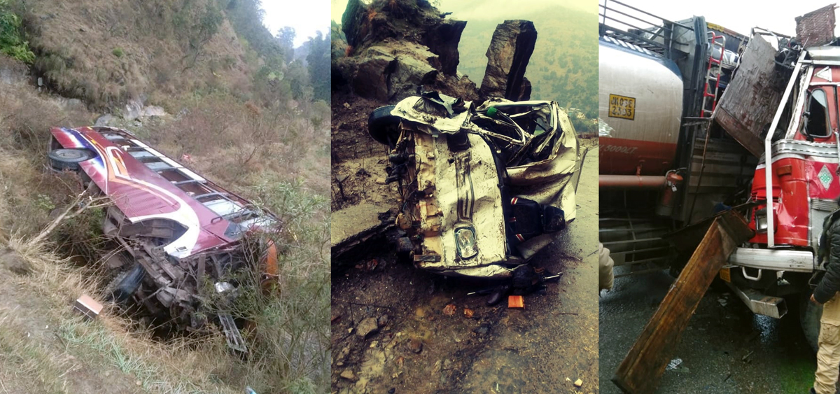 Ill-fated vehicles after accidents in Udhampur, Kishtwar and Ramban districts. —Excelsior pics by K Kumar, Tilak Raj & Parvez