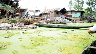 Illegal encroachment in Khushal Sar in Srinagar. --Excelsior/Photo