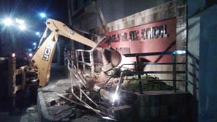 KATHUA, Feb 27: The district administration, Kathua launched anti encroachment drive during the late night in the town and dismantled number of the illegal structures raised in front of the shops on footpath.