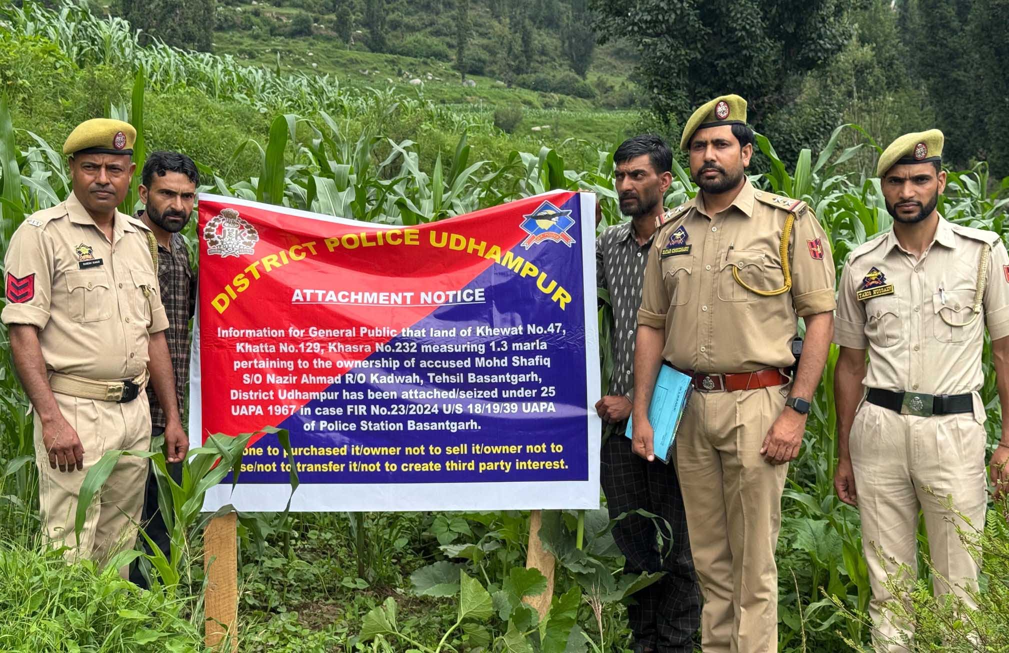 Jammu, Jun 23: Jammu and Kashmir police on Monday attached immovable property of a terror accused, who is presently under judicial custody, in Udhampur district, an official said.
