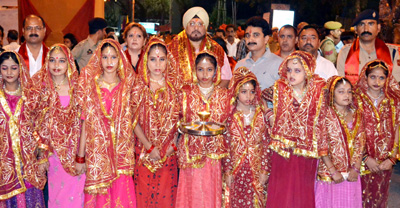 KATRA, Oct 19 : As a part of on-going Navratra Festival being organized by Shri Mata Vaishno Devi Shrine Board (SMVDSB) and Department of Tourism in collaboration with District Administration and local organizations at Katra, a scintillating cultural procession depicting rich culture of the State and other parts of the country was taken out from Asia Crossing, where the Director Tourism, Jammu, S. Robin Singh Mehta lit the sacred Joyti before the start of impressive procession.