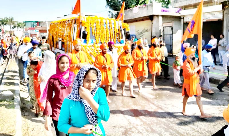 KATHUA, Nov 10: In connection with celebration of 550 years of Guru Nanak Dev Ji birthday, a Nagar Kirtan was taken out here today under tight security arrangements.