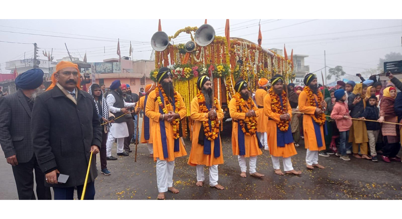 JAMMU, Jan 8: An impressive ‘Nagar-Kirtan’ was taken out by the Sikh community on the eve of Parkash Purab of Guru Gobind Singh, 10th Guru of Sikhism, who laid down his own life and sacrificed his father, mother and sons for the sake of humanity and protection of right cause of community.