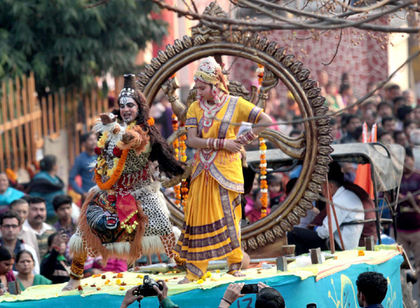A large number of jhankis were taken on tractor trolleys depicting the Lord Shiva, the Shiv Taandav etc.