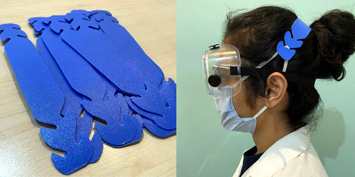 While the world is busy 3D printing things, we made these using thin but strong plastic sheets cut from folders files (see following image) manually. We are able to produce 100 times the number of such bands using this method compared to what we would have achieved with our currently broken FDM 3D printer. Talk about “necessity is the mother of invention”. We would be making more of these and providing them to our doctors working in various hospitals in Jammu.