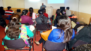 Students listening speaker keenly at Institute of Management Sciences in Jammu.