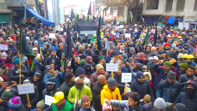 KARGIL, Jan 5: Conde-mning US for the gruesome attack which led to the ‘martyrdom’ of General Qasim Soleimani and Commander Mehdi Muhandis, the people of Kargil under the banner of Imam Khomieni Memorial Trust (IKMT) took out in-absentia funeral procession of Soleimani and Mehdi.