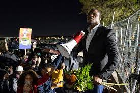 The 82-year-old congresswoman decried the 11 p.M. Curfew set by authorities as a way to tamp down demonstrations and encouraged the crowd of roughly 150 people to “stay in the street.” (AGENCIES)