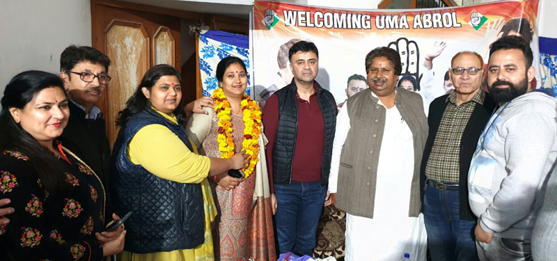 After joining Uma Abrol said her heart was all for the Congress. “I’ve joined the Congress inspired by Raman Bhlla, who believes in plain-speak and in action, rather than just making hollow announcements,” she said.