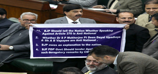 Independent MLA Pawan Gupta protesting in the Assembly on Tuesday. -Excelsior/Rakesh