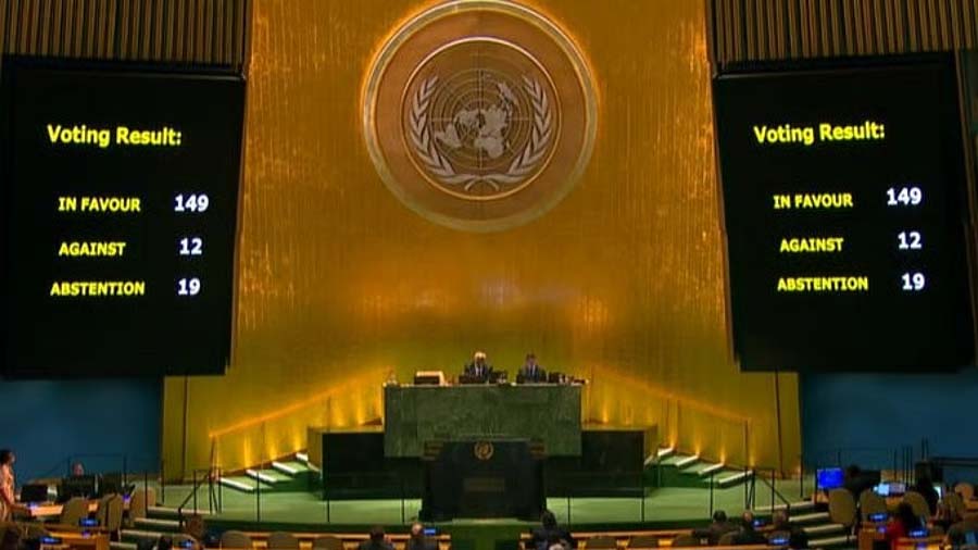 India was among the 19 nations that abstained, while 12 nations voted against the resolution, which got 149 votes in favour. Among the nations abstaining were Albania, Cameroon, Ecuador, Ethiopia, Malawi, Panama, South Sudan and Togo.