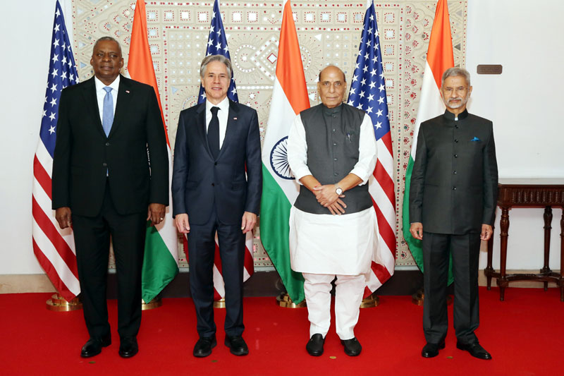 The American delegation at the ‘2+2’ ministerial dialogue talks was led by US Secretary of State Antony Blinken and US Defence Secretary Lloyd Austin while External Affairs Minister S Jaishankar and Defence Minister Rajnath Singh headed the Indian side.