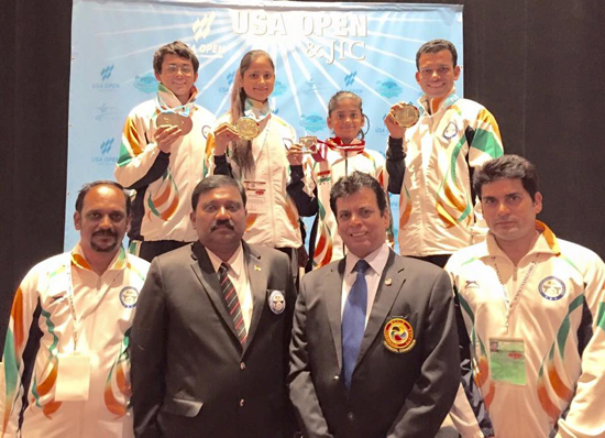Indian team won two gold, one silver and one bronze medals in Mix Team Kata, Senior Women Open Individual Kumite, Sub Junior Girls Kata and Men’s Individual Kata events at US Open Karate Championship, 2015 held at Las Vegas in USA.