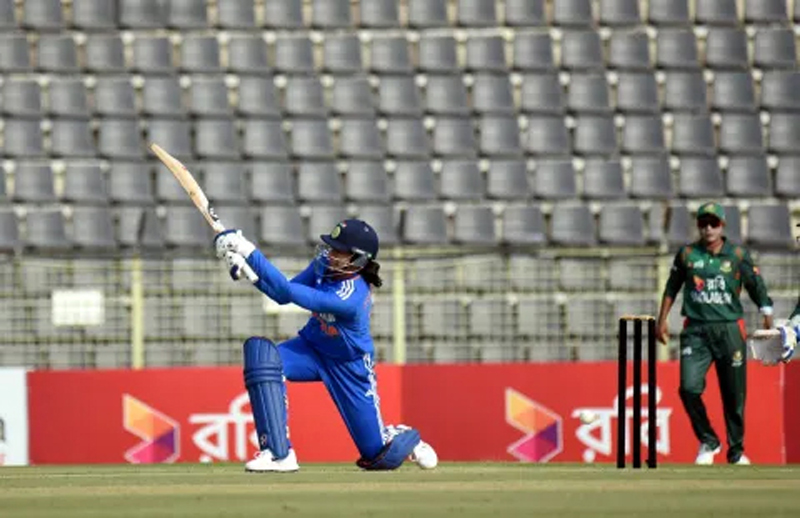 Mandhana started in right earnest dispatching Sultan Khatun’s consecutive deliveries in the second over to the ropes.