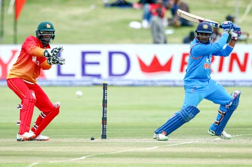 Rahul looked solid for at least another half-century but he dragged one from Chamu Chibhabha onto his stumps. He had four boundaries in his 50-ball knock.