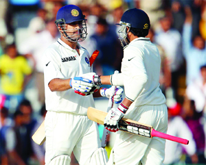 When the final hour started, India required 45 runs from a minimum of 15 overs. They completed the chase losing the wickets of Murali Vijay (26), Cheteshwar Pujara (28), Virat Kohli (34) and Sachin Tendulkar (21).